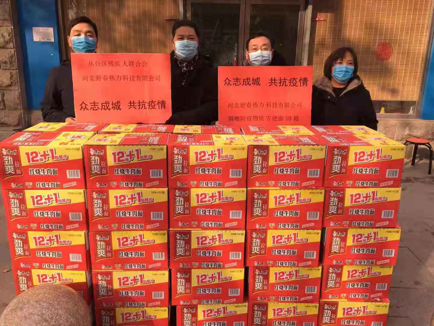 眾志成城 共抗疫情 河北舒春熱力科技有限公司與河北舒春叢臺分公司代表,今天上午10時到叢臺區(qū)殘疾人聯(lián)合會的防疫疫情執(zhí)勤卡點(diǎn)慰問一線工作人員,有力地支援了疫情防控一線,為打贏全市疫情防控阻擊戰(zhàn)貢獻(xiàn)了民營企業(yè)的一份力量。 |